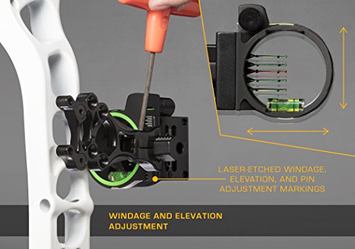 There’s a convenient reversible mount meaning this product is suitable for both left and right handed bows. Its bright green accented hood design also assists with better overall sight acquisition. There’s also plenty of customizations such as elevation, laser-etched aluminum windage, and pin adjustments.